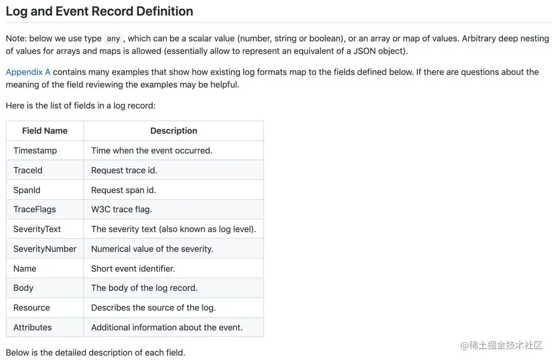 以下介绍了 OpenTelemetry 中,Log 的数据格式规范。