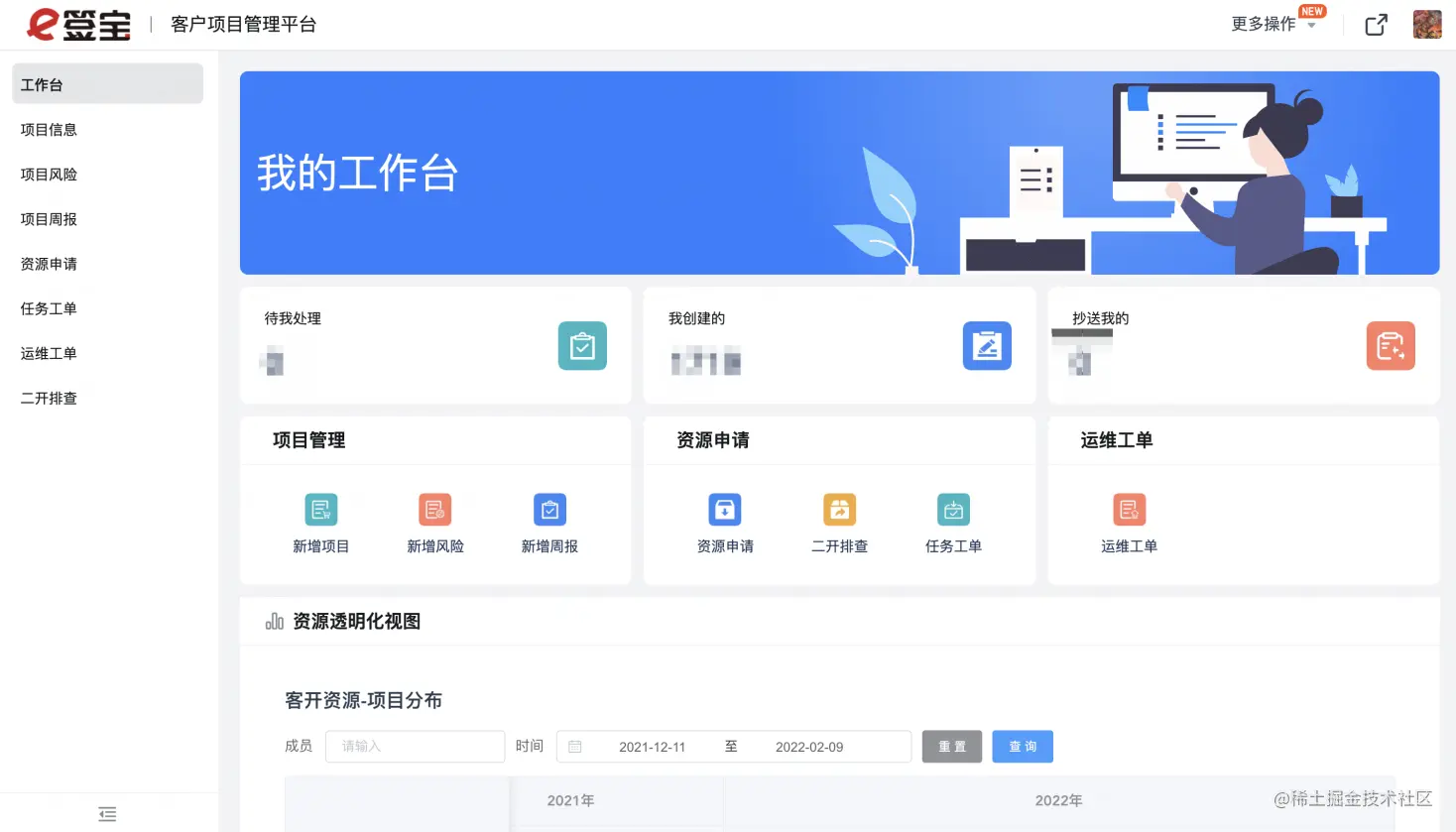 随着公司业务的不断壮大,e签宝不断加大对内部信息化发展的投入,但企业需要交付的项目越来越多,传统交付管理模式亟待改进,尤其是项目数据的统计、整合与同步都需要更加清晰高效。为此,项目交付层面的数据管理信息化,就成为了e签宝的重点建设目标。