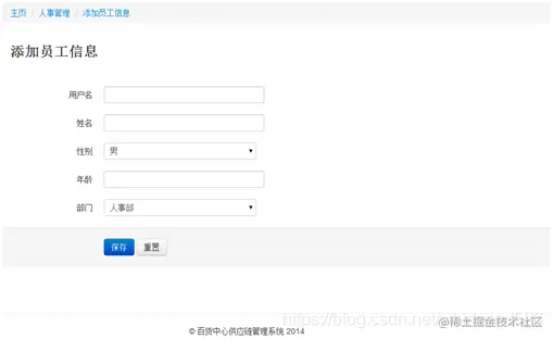 用户点击人事管理界面上的“添加员工”按钮进入添加员工界面,在本页面中输入要添加的员工的信息后,点击保存,即可将新的员工信息添加进数据库中,如果有关键的信息没有正确输入,页面会给出相应的提示。
