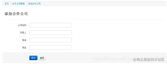 用户点击合作公司管理界面上的“添加合作公司”按钮进入添加合作公司界面,在本页面中输入要添加的合作公司信息后,点击保存,即可将新的合作公司信息添加进数据库中,如果有关键的信息没有正确输入,页面会给出相应的提示。