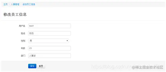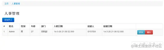 用户进入人事管理界面后,可以根据页面的文字提示对人事信息进行相应的操作,所有员工的主要信息被页面上的表格列出并实现分页功能。