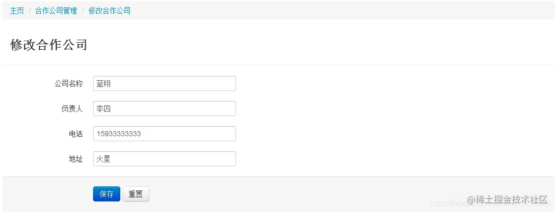 类似于添加合作公司信息,修改合作公司信息界面实现了对单个合作公司信息的修改,同样实现了出错提示功能。