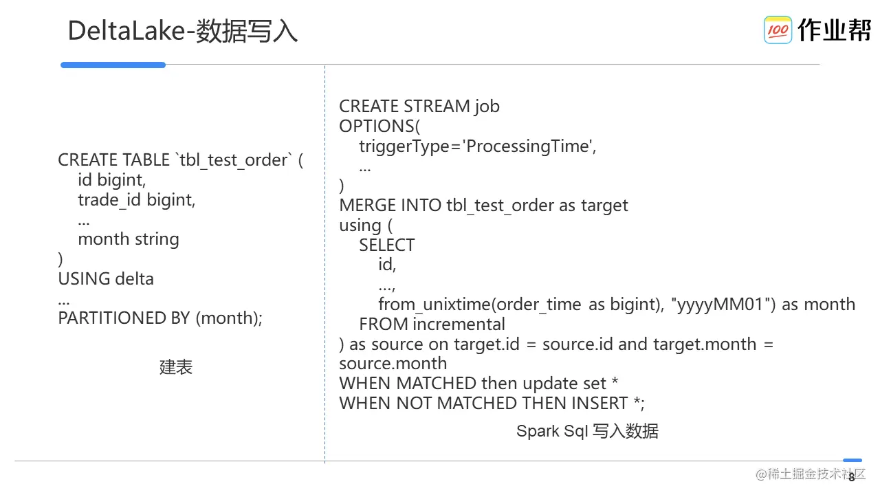 DeltaLake 支持通过 SparkStreamingSQL 的方式来写入数据。