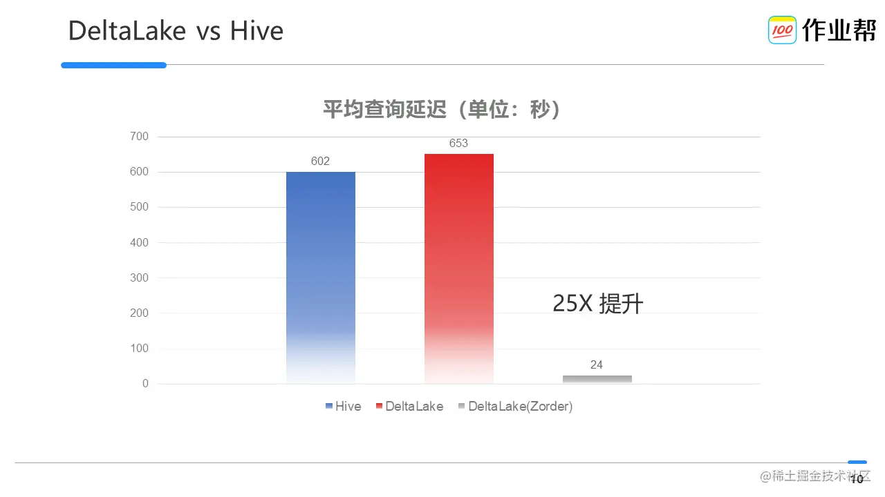 40mins降低到10mins。 - 查询速度提升:我们重点提升的分析师的即席查询效率,通过将分析师常用的数仓表迁移到 Deltalake 之后,利用 Zorder 实现了查询加速,查询速度从过去的数十分钟降低到~3mins。