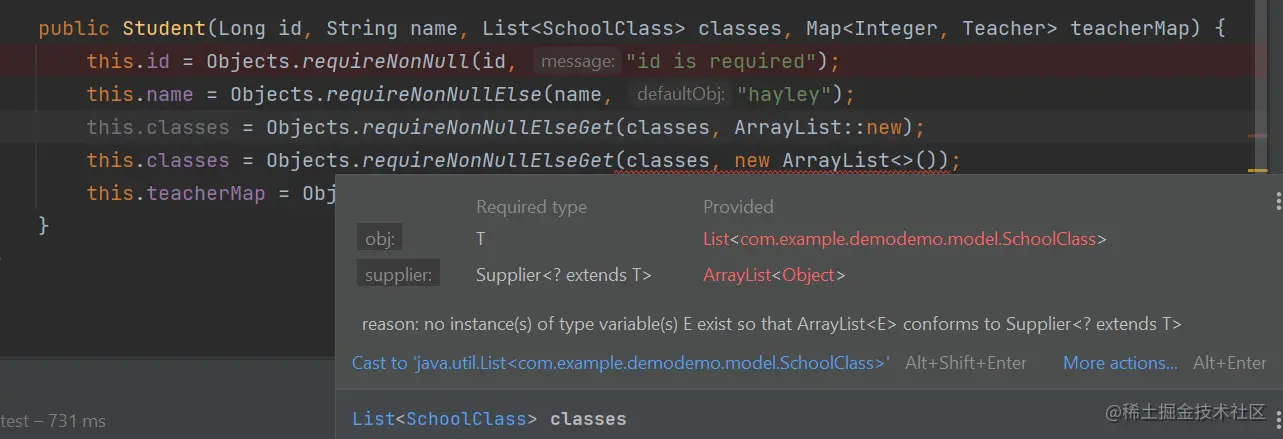 因此,我们可以使用方法引用requireNonNullElseGet. 它在处理Lists、Maps、Sets时特别有用,如果你想把它们初始化为空的Lists、Maps、Set等。