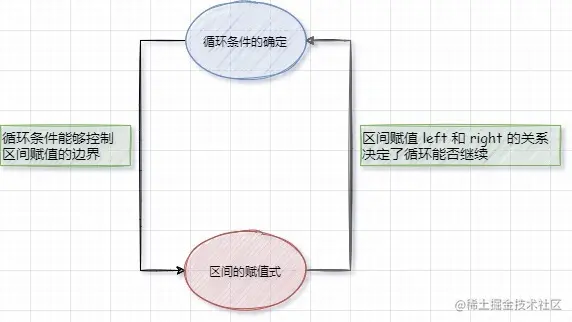 🏆二分查找的思想就是逐步缩小搜索区间;它由循环条件与区间赋值构成。