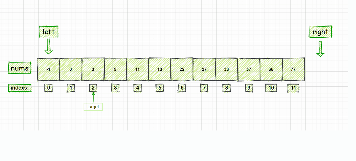 显然这不是我们要的结果,所以左闭右闭找法的循环判断条件为 while(left <= right)。
