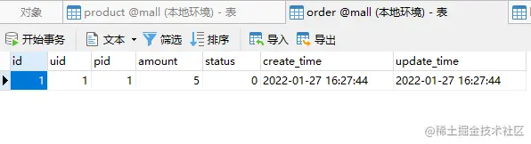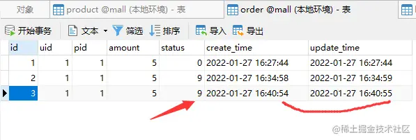 3的订单,它的订单数据状态为9。产品数据表ID为1的产品,它的库存还是100且数据更新时间也发生了变化。