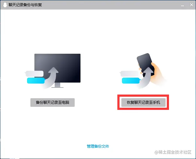步骤二: 点击“恢复聊天记录至手机”。