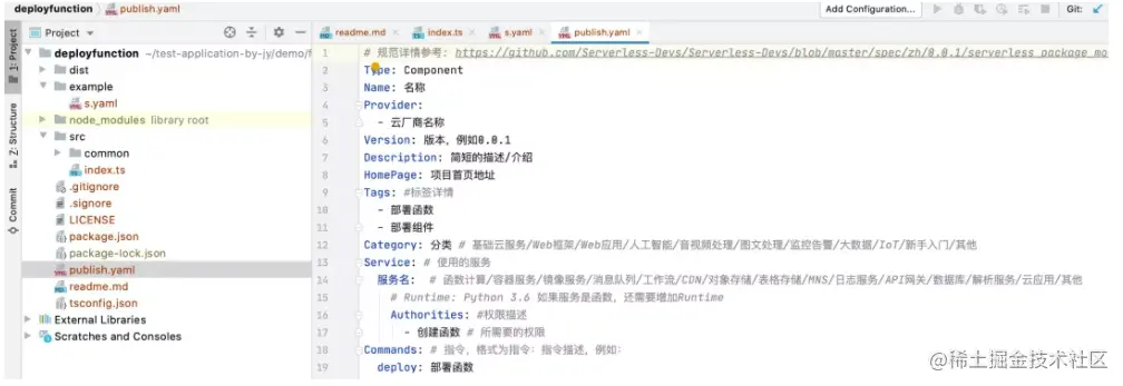 当然,除了 publish.yaml 之外,在 Serverless Package 的规范中,目录哪还有其他的文件:
