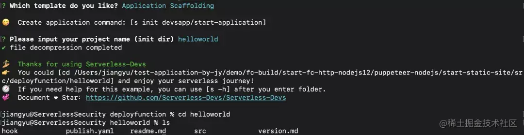 开发者只需要执行s init,并且选择Dev Template for Serverless Devs即可: