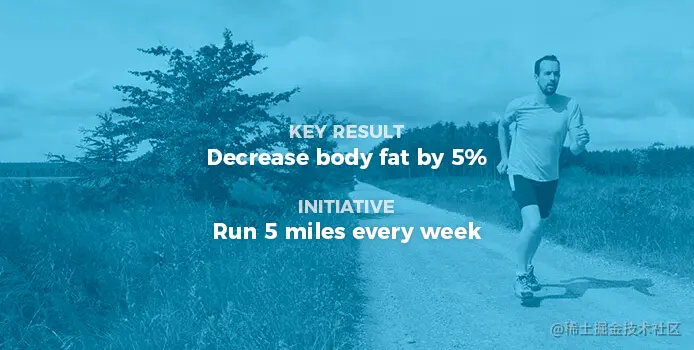 Initiative: 每周跑5英里 这是让你能够向Key Result前进的具体动作,它回答了问题:需要通过做什么来达成目标?