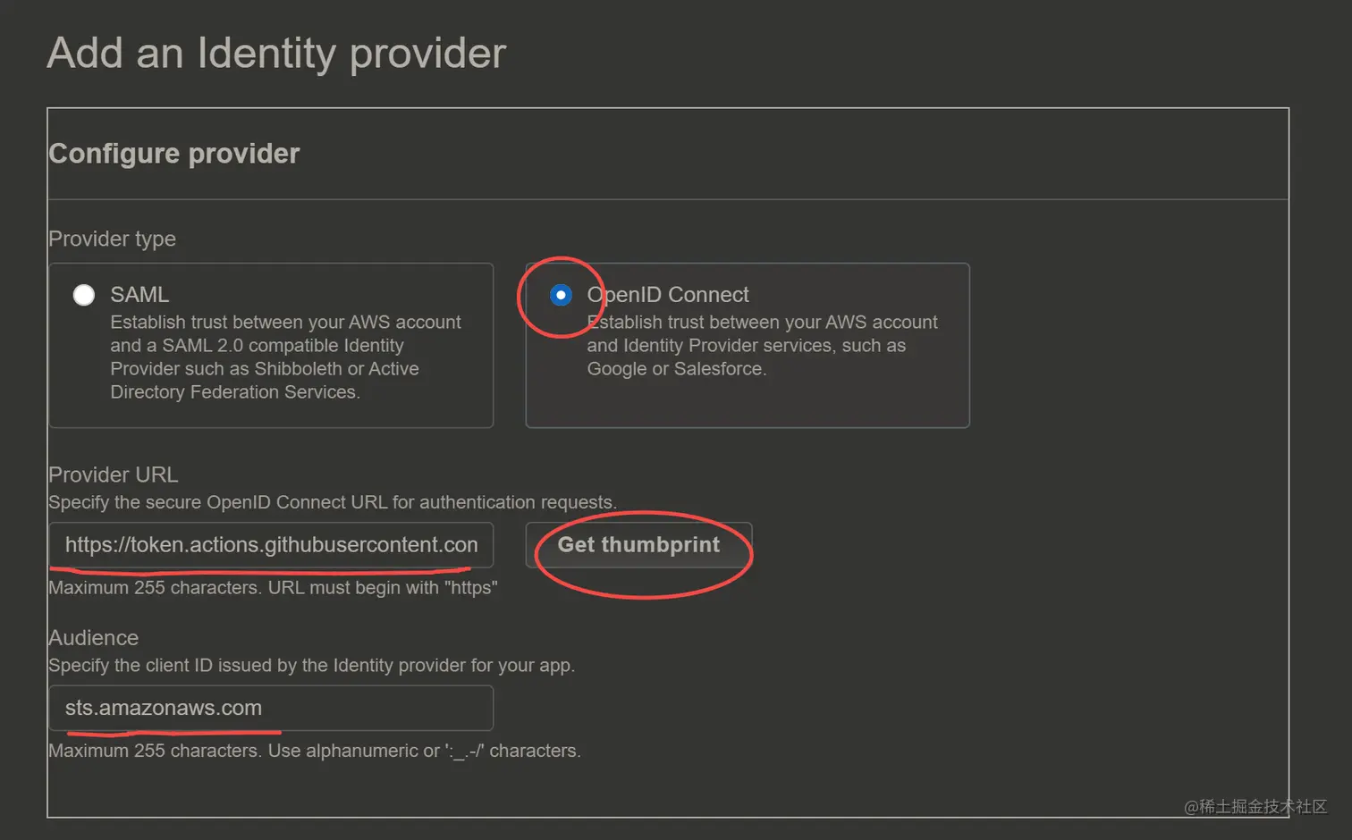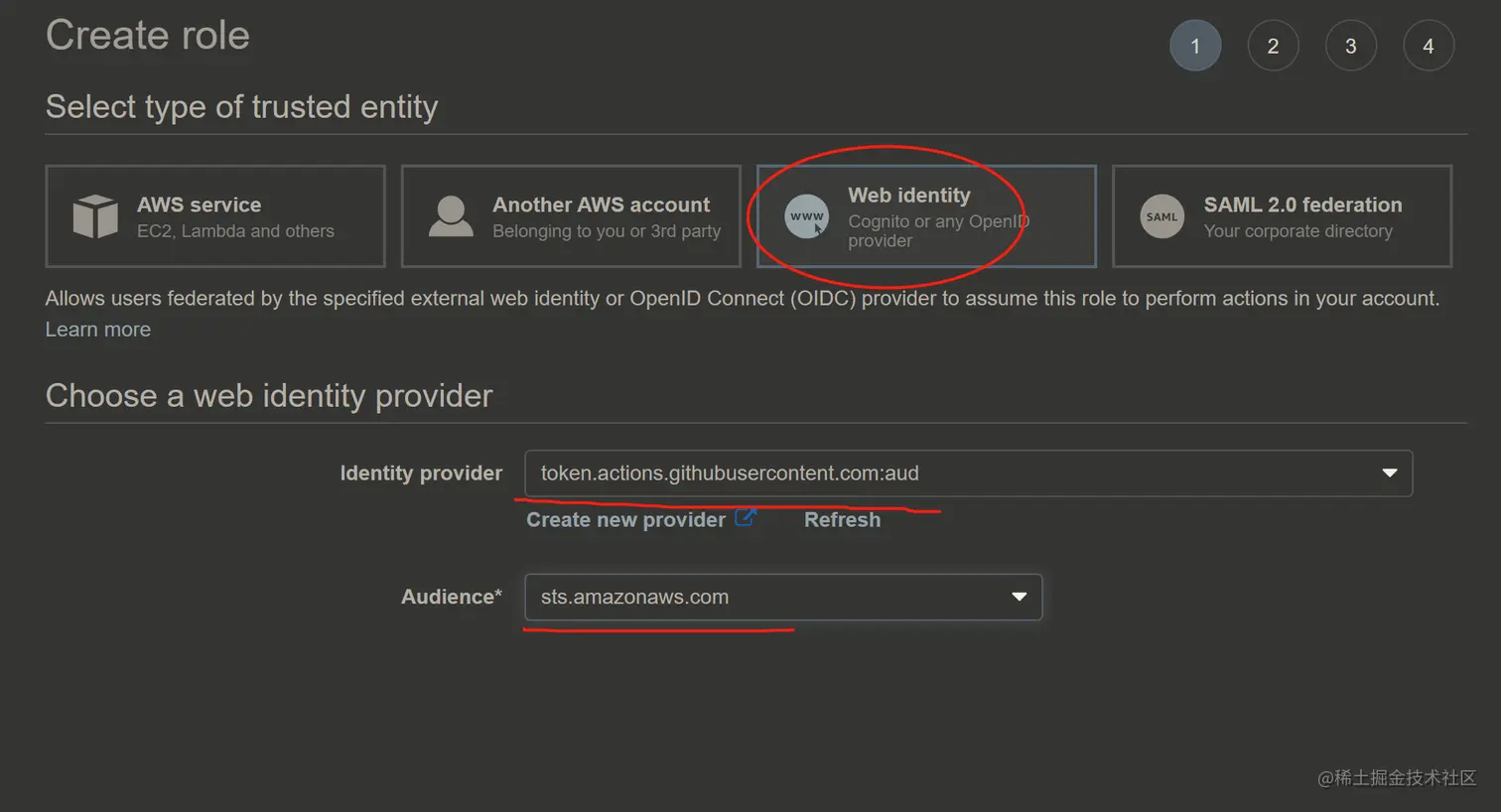 然而 AWS 推荐使用 AssumeRole 的方式,具体原因看参考文档,通过OpenID Connect方式来申请一个临时的角色来获得权限。