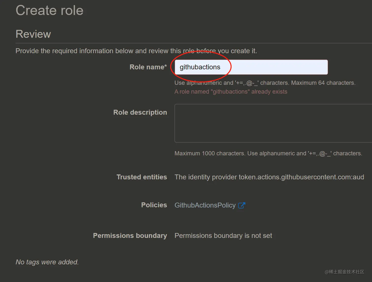 总的来说就通过 OpenID Connect 的方式,仅授权 Github 来申请使用角色,该角色最后在bucket下给了write权限,使得部署成功;这样完成了不需要向 Github 填入 secret 之类的。