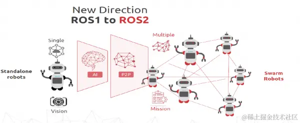 图 2 ,一个新的方向:从 ROS 1 到 ROS 2 的迁移,实现了机群机器人的自主化