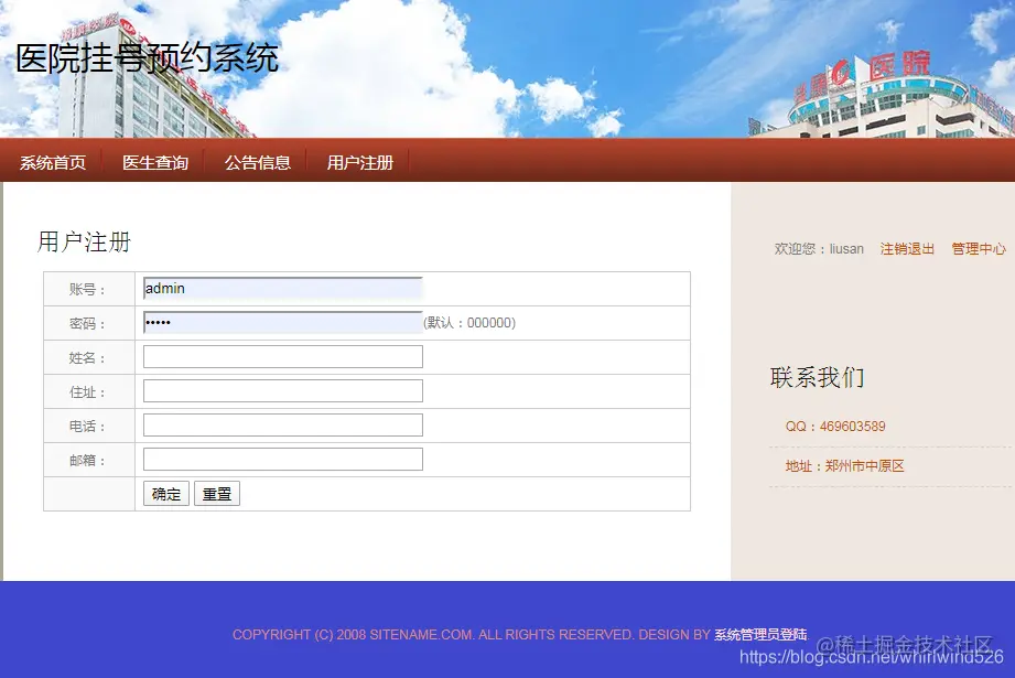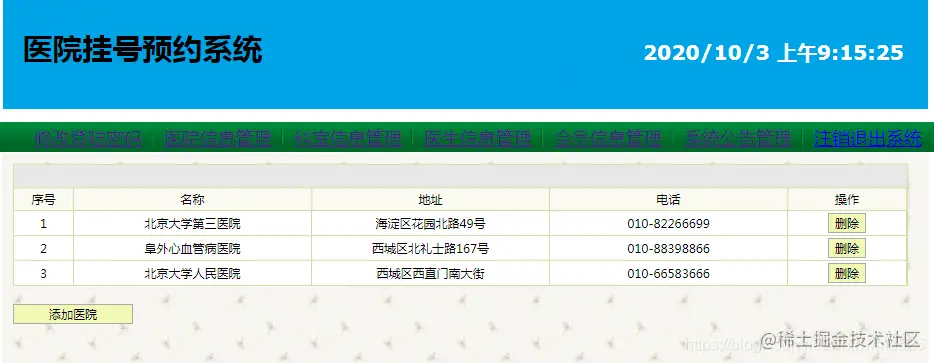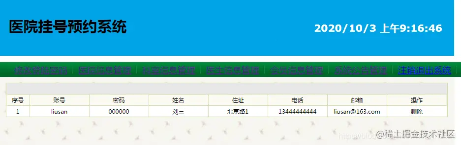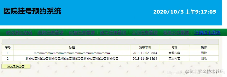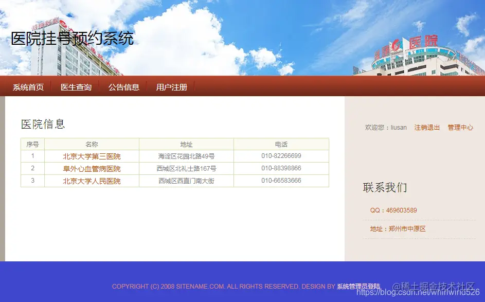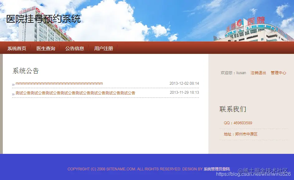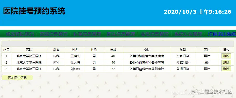 系统分两个角色:系统管理员和前端用户。前台用户可以实现注册,医生查询挂号,公告信息查看,个人信息管理,挂号取消等 操作;后台管理用户可以实现用户管理,医院管理,科室管理,预约信息管理,公告管理等。运行无误。
