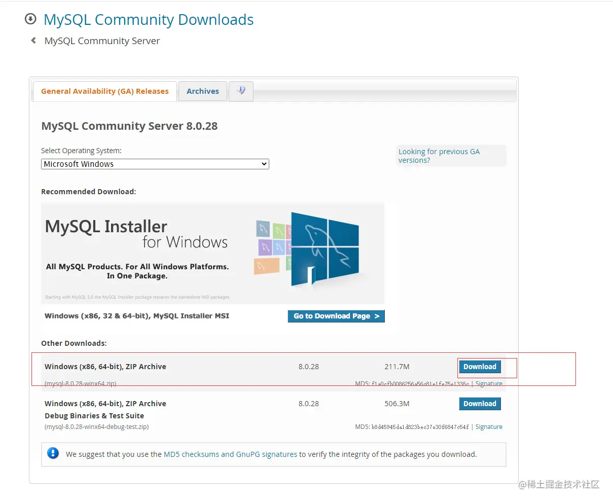 然后我们安装的是zip版本,强烈的不建议安装msi版本。msi版本总能给你安装一些莫名其妙的你又用不到的东西。卸载的时候那就更痛苦的。相当初sqlserver那是折腾的死去活来。