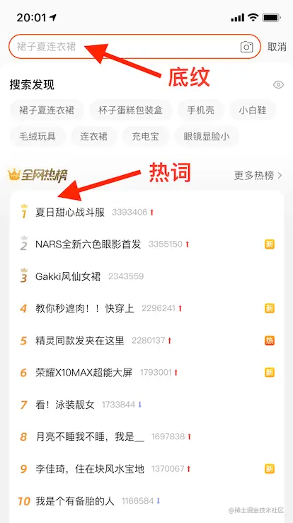 热搜和底纹是一个完整搜索引擎必备的基本功能,通常占据着搜索框入口的重要位置,提供不可或缺的业务价值。
