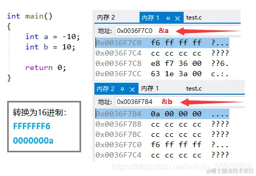 ❓ 我们可以看到对于 a 和 b 分别存储的是补码,