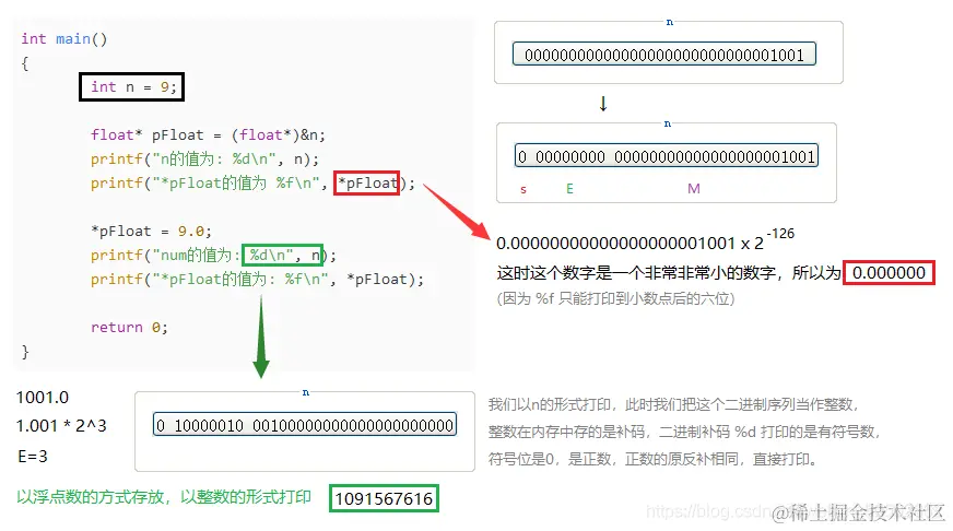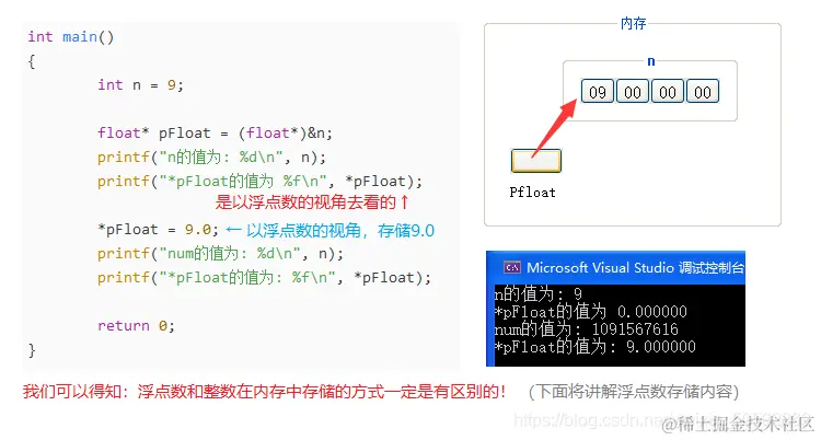 ❓ num 和 *pFloat 在内存中明明是同一个数,为什么浮点数和正数的解读结果会差别这么大?