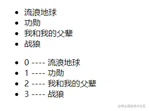 <li v-for="(movie,index) in movies">{{index}} ---- {{ movie }}</li>