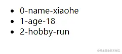 <li v-for="(value,key,index) in info">{{index}}-{{key}}-{{value}}</li>