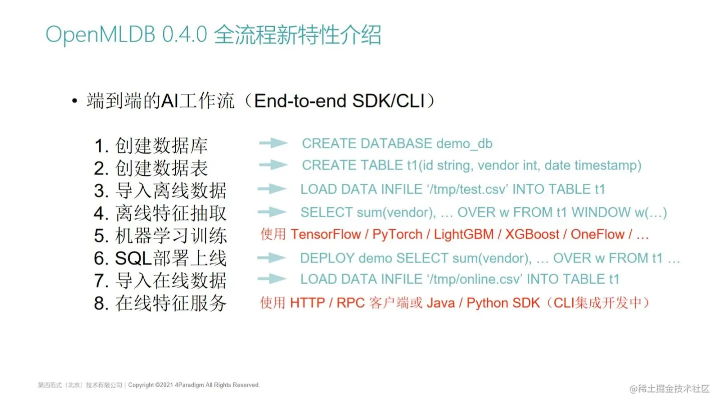 - OpenMLDB 0.4.0全流程的新特性