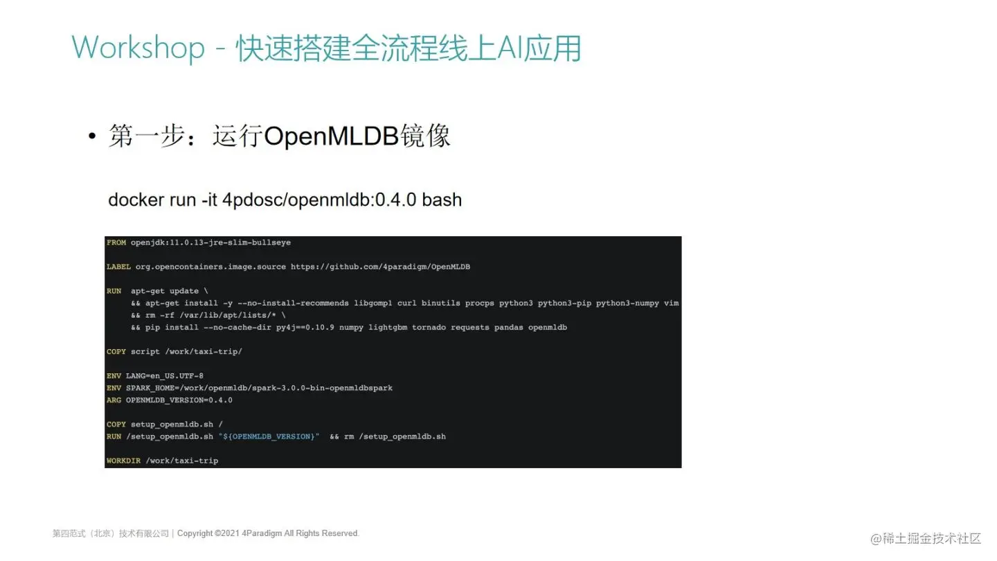 接下来就大家来演示一下,我们在使用OpenMLDB建模的时候,首先需要搭建一个OpenMLDB数据库运行环境。