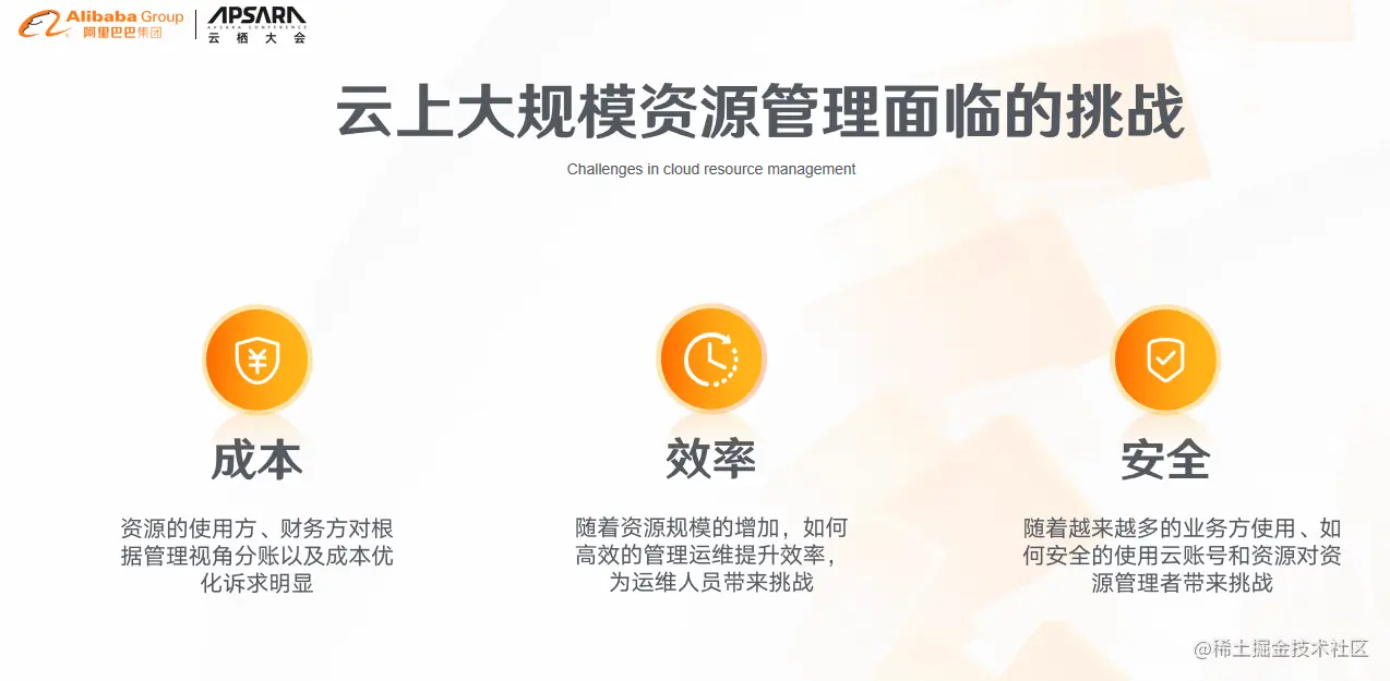 因为管理资源有很多种场景,这里只列举三个场景:成本、效率、安全。