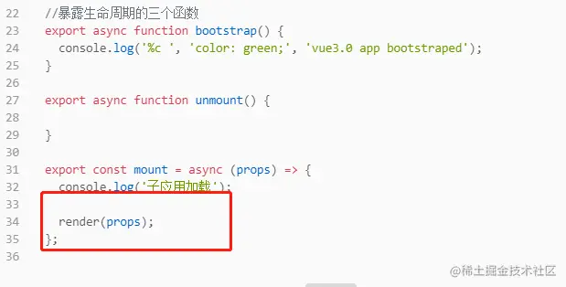 在子应用的main.js配置中,生命周期的方法里,可以获取到前面注册传入的props参数