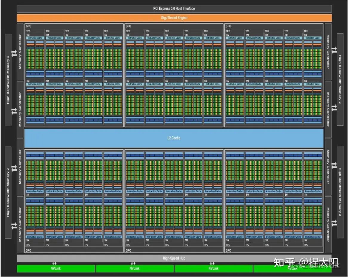 - SM(streaming multiprocessor) 流式多处理器,它包含若干调度器(Warp)、计算核心、寄存器、L1Cache、内存传输等结构