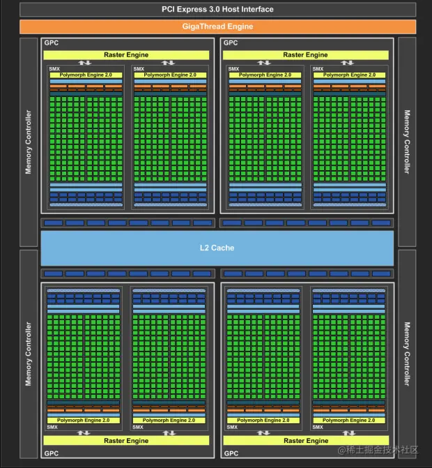 (开普勒)合并核心,统一GPU时钟,提升效能和可编程性,每个SMX中有192*core
