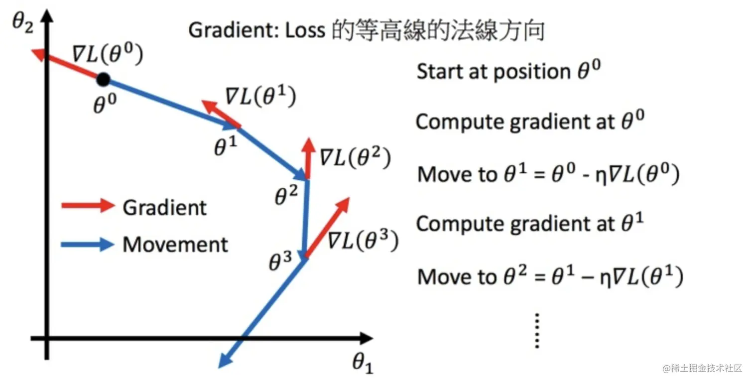 上图是一个基于回归模型的梯度更新的示意图,在这个图中,我们可以看到几个关键的点位: