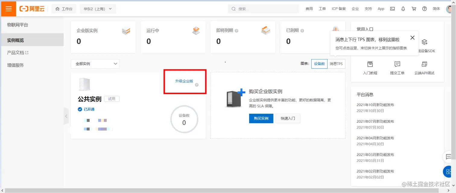 简介:2021年7月30日企业物联网平台重磅升级,发布的新版公共实例支持一键升级企业版实例,本文将为大家介绍一键升级教程。