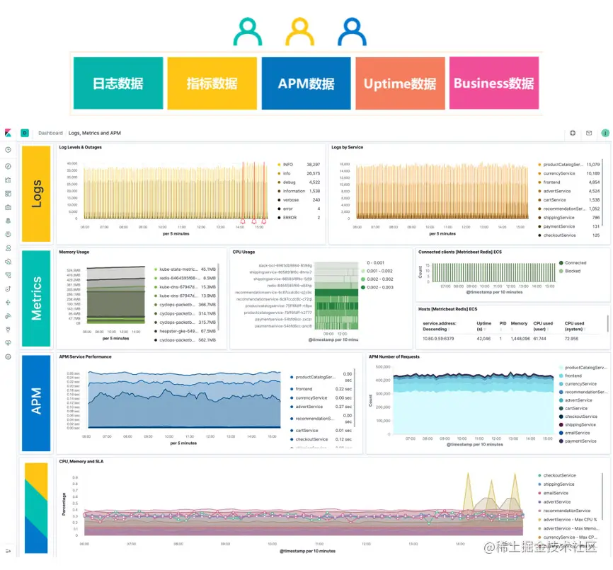 而全观测是对传统运维的改进。它将日志、指标、APM数据,汇总在一个平台,让运维、开发、业务人员对所有的数据从统一视角进行观察分析,可以实现——