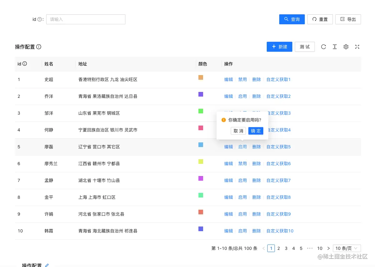 - 当你需要 新建、导出、编辑、状态、删除等功能,结合接口,一键式构画的时候