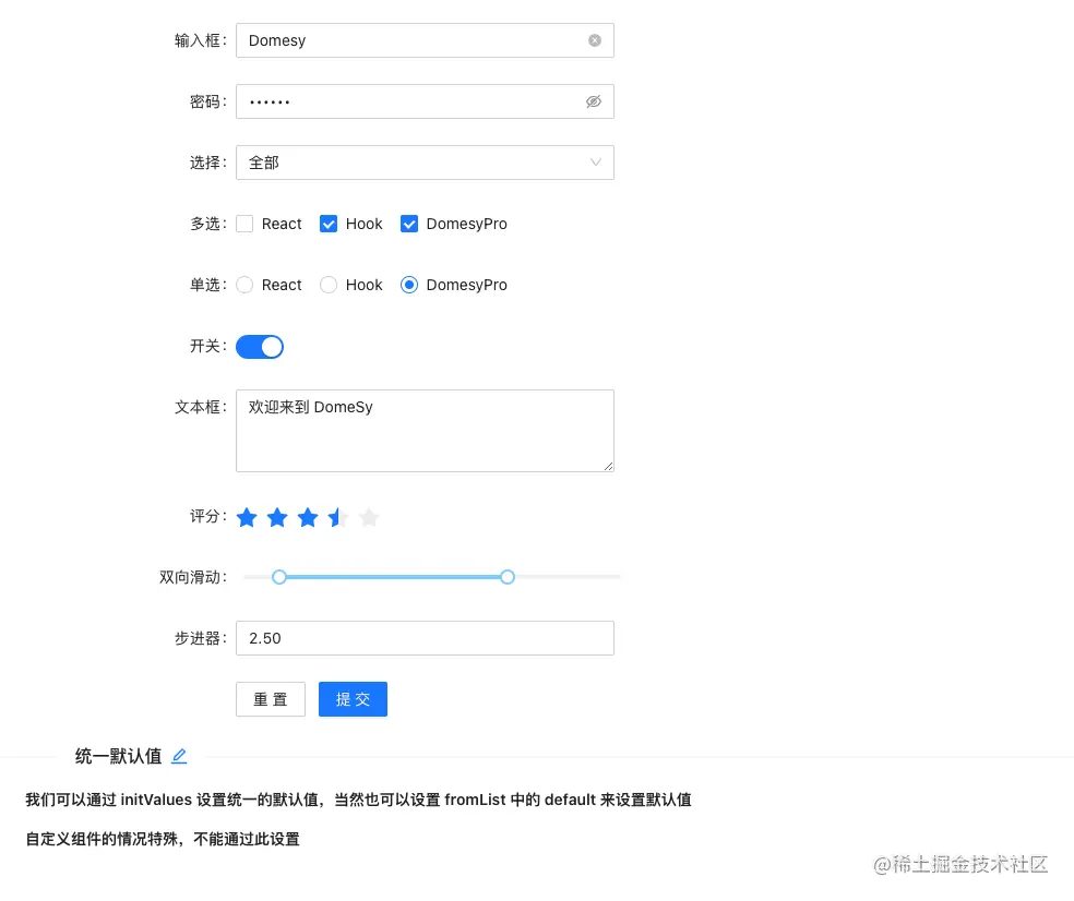 - 表单关于一些常用的配置,这里还没有做,完全兼容于ProTabl,如果有更好的建议,请在评论区留言~~