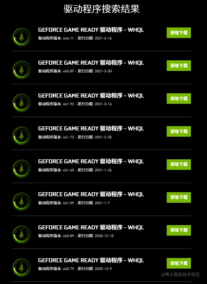 - 选择自己的系统和显卡型号,查看自己可以使用的显卡驱动列表: