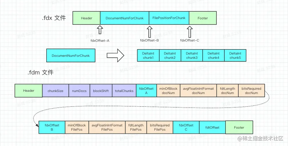 - fdxOffset-C:对应fdx的a的offset,后面4个字节是对应于docmentNum数组