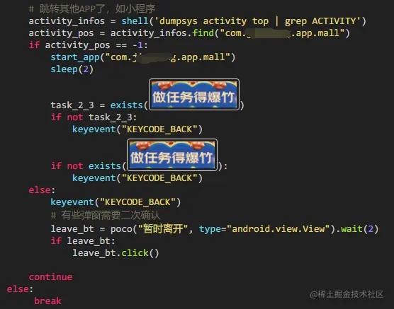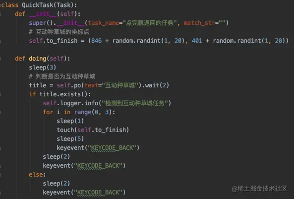 - 完成任务:获取未完成任务,点击进入 → 进入后依次判断任务具体做啥 → 执行对应操作