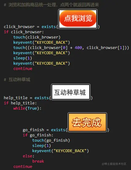 再接着是去完成的核心代码,需要注意图片匹配总是命中去下单的问题: