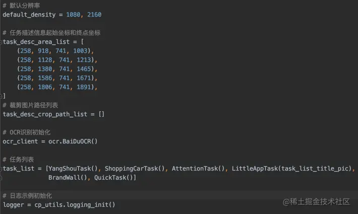 流程就是,对应文字区域截图,然后根据Airtest定位到的去完成任务来判定具体执行哪个任务,先定义一些变量: