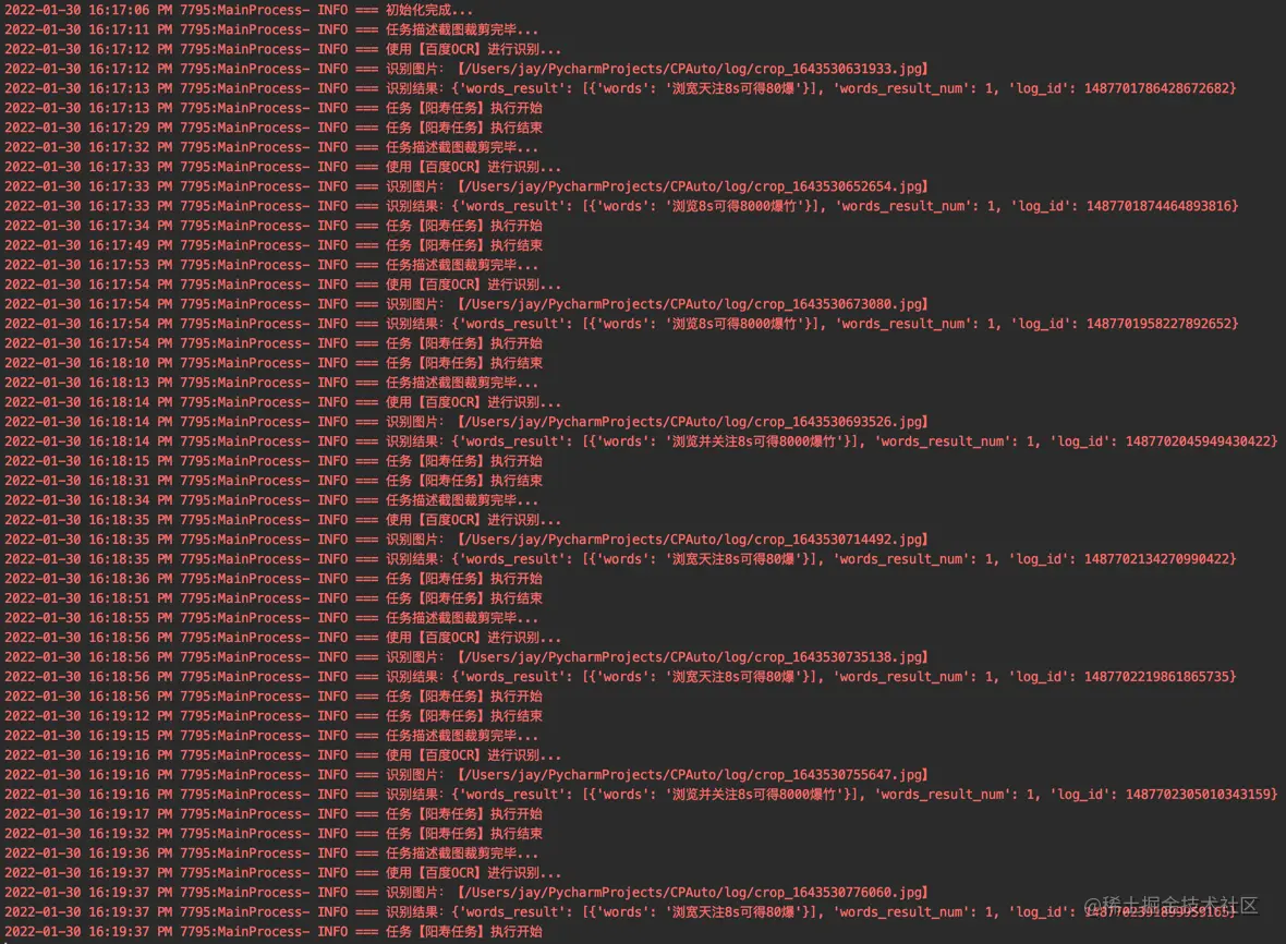 考虑到OCR识别中文不一定准确,所以只判断任务描述中是否有关键字,比如8s、4个、关注等,也可以进行两串文本的匹配对判断,高于多少百分比认定为同一个任务。