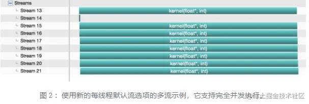 - 记住:对于每线程的默认流,每个线程中的默认流的行为与常规流相同,只要同步和并发就可以了。对于传统的默认流,这是不正确的。