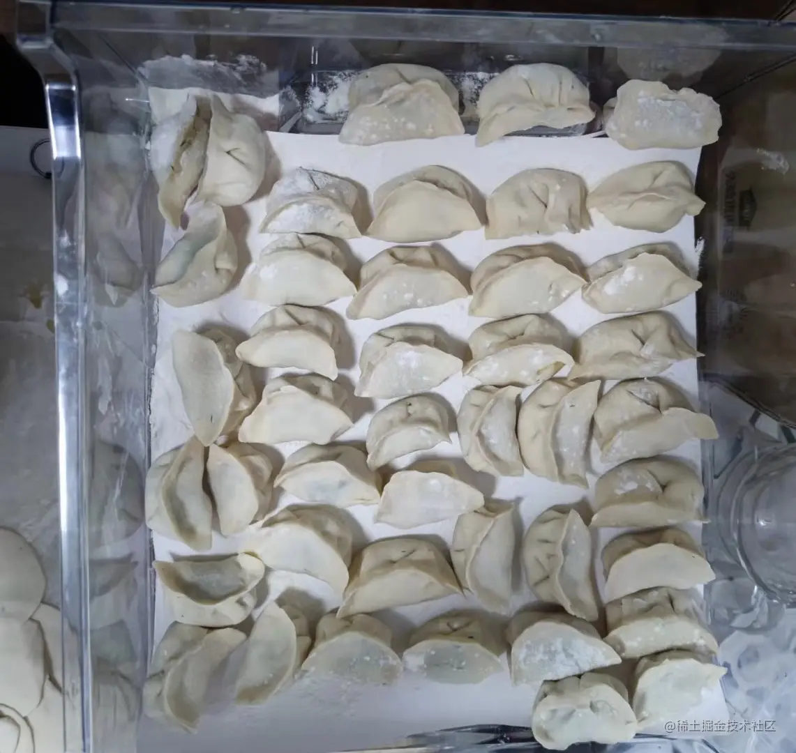 PS:今天值班完晚上和兴哥去了趟超市,回来之后就开始包饺子,忙乎了半天忘了是周日了,哈哈,假期有些过得作息颠倒,还好最近晚上睡得晚,习惯了晚睡补上了2021年的年终总结,最后附一张今天晚上包的饺子😊