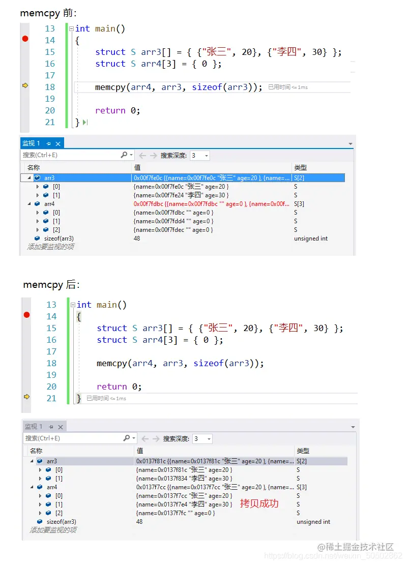 struct S arr3[] = { {"张三", 20}, {"李四", 30} };