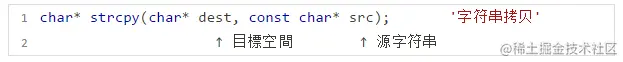 📚 说明:字符串拷贝,将含有 \0 的字符串复制到另一个地址空间,返回值的类型为 char*