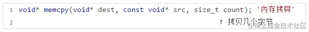 📚 说明:从源内存地址 src 的起始位置开始拷贝 n 个字节到目标内存地址 dest 中