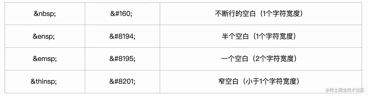 html空格 终身成长型 2022-02-01 498 阅读1分钟 html的方式空格 Css 的方式空格 CSS中当 white-space 属性取值为pre时,浏览器会保留文本中的空格和换行,例如: AA BB 显示效果为: AA BB CSS的 letter-spacing 属性用于设置文本中字符之间的间隔,例如: 欢迎光临! 显示效果为: 欢 迎 光 临 ! CSS的 word-spacing 属性用于设置文本中单词之间的间隔,例如: Happy new year! 显示效果为: Happy new year!