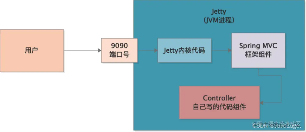 Jetty作为JVM进程运行我们写好的系统的流程: